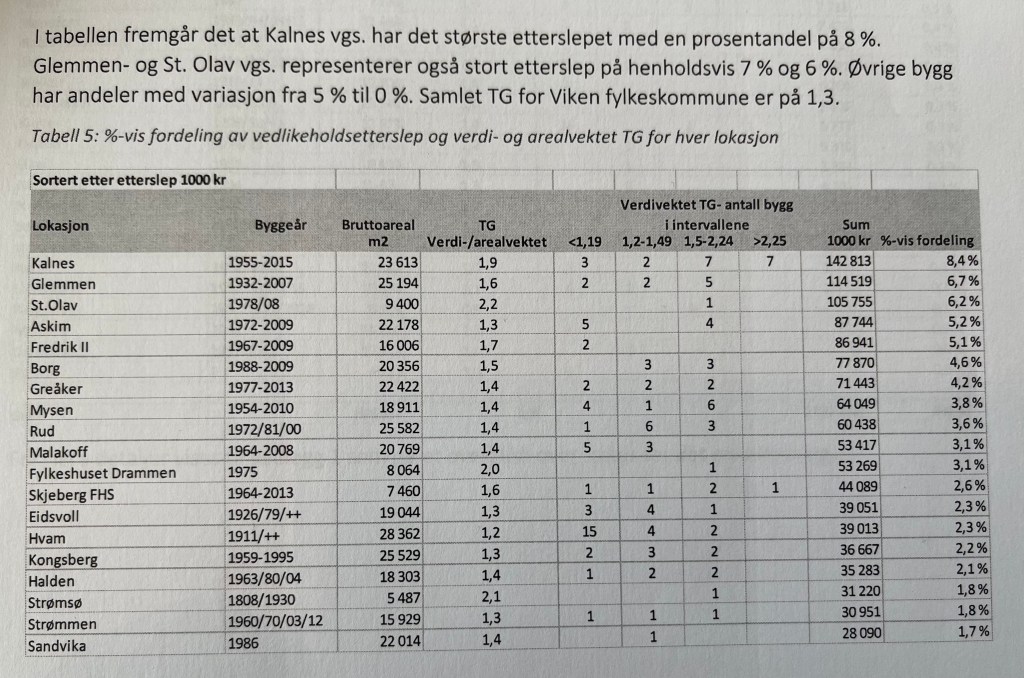 Hvordan er så denne enorme verdien i eiendom forvaltet? I varierende grad for å si det diplomatisk. Det har Viken arvet. Med den strategi det nå legges opp til – tas det tak i etterslepet. Det skal nå etableres et investerings- og rehabiliteringsprogram (IRP) etter modell fra tidligere Akershus. Det settes av midler til dette i kommende økonomiplan. Det er bra.